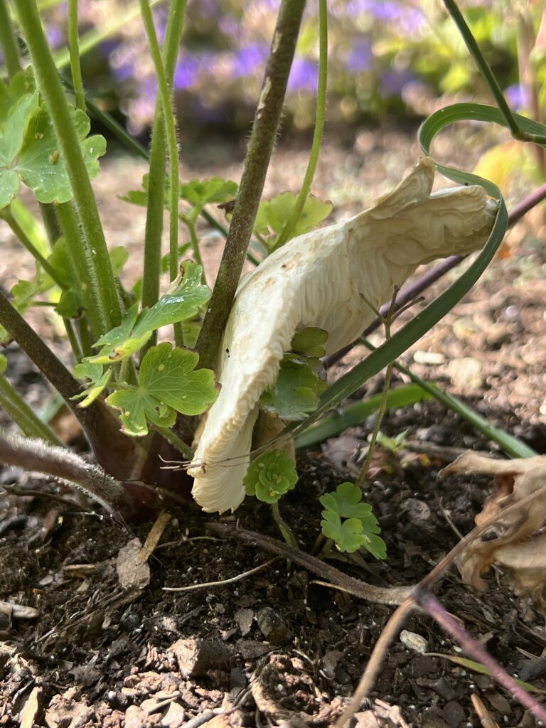 Tot er ineens iets nieuws verscheen… Paddenstoelen, deze keer in de andere border. Geen paddestoelencirkel of sprookjesachtig tafereel, nee gewoon… natuur. Organisch. Opeens aanwezig.